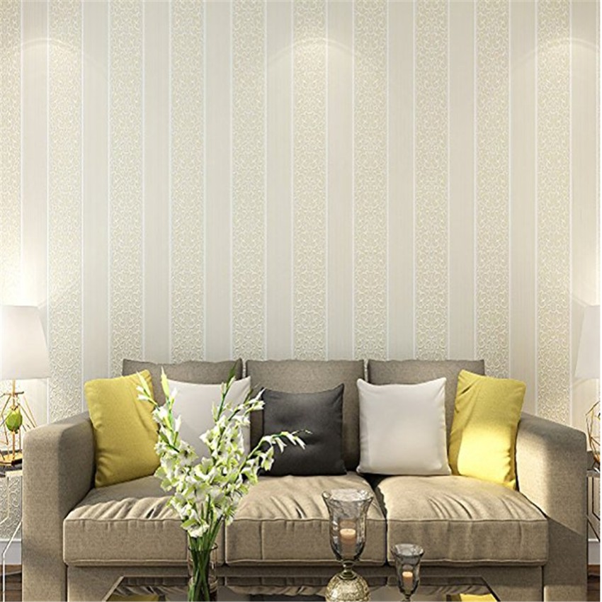 Wallpaper Dinding Non Woven Motif Garis Vertikal Gaya Eropa Untuk Ruang Tamu Tv